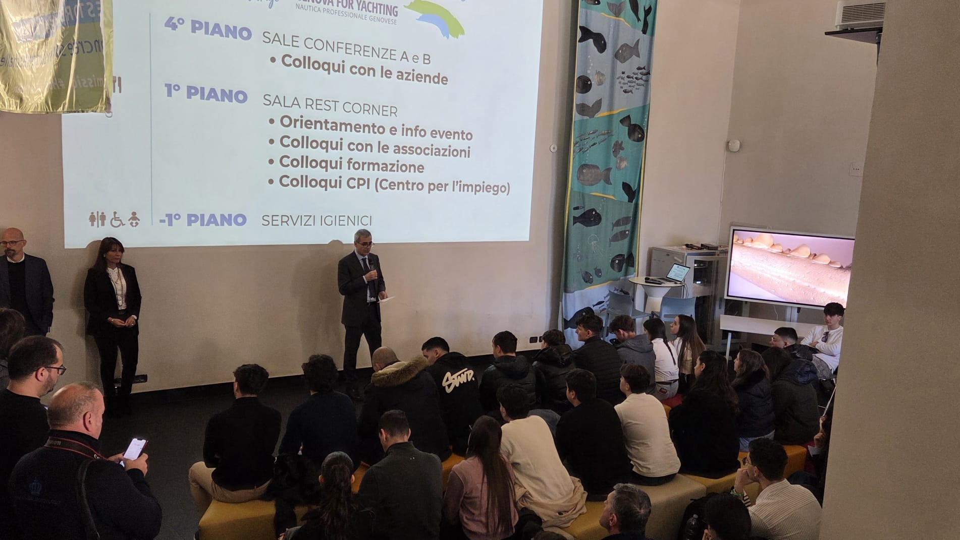 L’iniziativa, ospitata negli spazi del Genova Blue District in via del Molo 65, si inserisce nel progetto Blue Skills e coinvolge istituzioni, università e realtà produttive del territorio, con l’obiettivo di mettere in relazione formazione e lavoro in un settore in forte espansione. All’appuntamento hanno preso parte oltre 300 ragazze e ragazzi, 7 scuole, 22 aziende e le associazioni Assagenti, Confindustria e Spediporto.