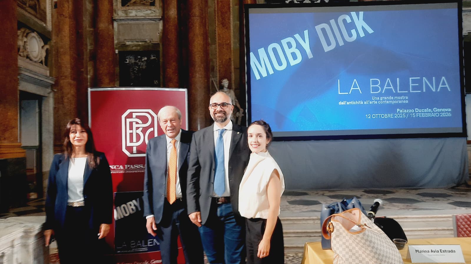 «La collaborazione con la rete dei Musei di Genova è uno dei valori aggiunti di “Moby Dick – La Balena”, una grande mostra internazionale che va dall'arte antica fino al contemporaneo, riuscendo a coinvolgere non solo soggetti internazionali come prestatori e organizzatori, ma anche la rete territoriale che, attraverso le sue collezioni, diventa costruttrice del percorso espositivo – commenta l'assessore alla Cultura del Comune di Genova Giacomo Montanari – Questo è un grandissimo valore per la città, perché significa anche permettere di dare luce al territorio, costruendo un progetto capace di arrivare a tutti e di costituire, nei confronti del pubblico, un'attrattiva forte. La mostra racconta una storia straordinaria che passa attraverso gli oggetti, la visione degli artisti e il racconto innovativo di un testo capitale come quello di Melville. Ciò avviene non a caso in un anno dedicato all'800, il secolo dei grandi romanzi e della trasformazione della letteratura. Una visione complessiva, innovativa e prismatica sotto tanti punti di vista – prosegue l'assessore –  che diventa il cuore di una mostra che parla davvero a tutte le sensibilità, dai bambini fino agli studiosi, con un approccio al contempo giocoso e scientificamente curato, con l'ausilio delle tecnologie immersive. A nome dell'Amministrazione ringrazio Palazzo Ducale Fondazione per la Cultura, TBA21 Thyssen-Bornemisza Art Contemporary, le curatrici Ilaria Bonacossa e Marina Avia Estrada, e tutti coloro che, con immensa dedizione e capacità esplorativa, hanno partecipato all'allestimento di questa mostra che invito tutti a visitare per restare incantati, ancora una volta, di fronte al fascino e al mistero del mare e dei suoi abitanti. Un mare – conclude Montanari – che è certamente luogo di scoperta, ma deve essere anche spazio di dialogo e riflessione sul futuro in ambito culturale per una città come Genova».