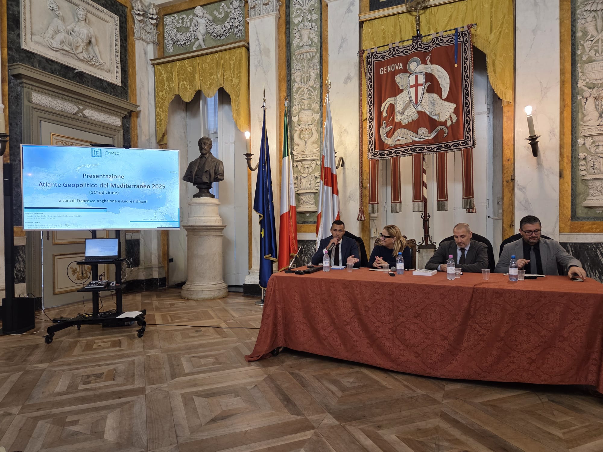 Il Salone di Rappresentanza di Palazzo Tursi oggi ha ospitato la presentazione dell’Atlante Geopolitico del Mediterraneo 2025, un appuntamento che ha riunito esperti, istituzioni e cittadini intorno a una riflessione condivisa sul futuro dell’area mediterranea.