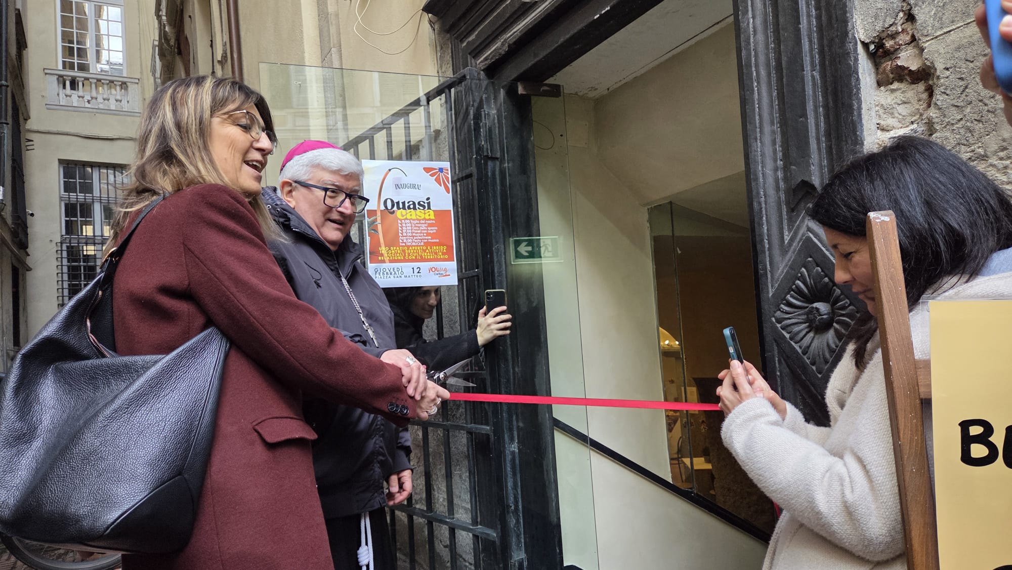 È stato inaugurato questa mattina in piazza San Matteo “Quasi Casa”, nuovo spazio gratuito nel cuore del centro storico, aperto e condiviso, ideato dai giovani di YoungCaritas Genova per mettere in relazione persone, opportunità sociali e iniziative culturali accessibili a tutti.