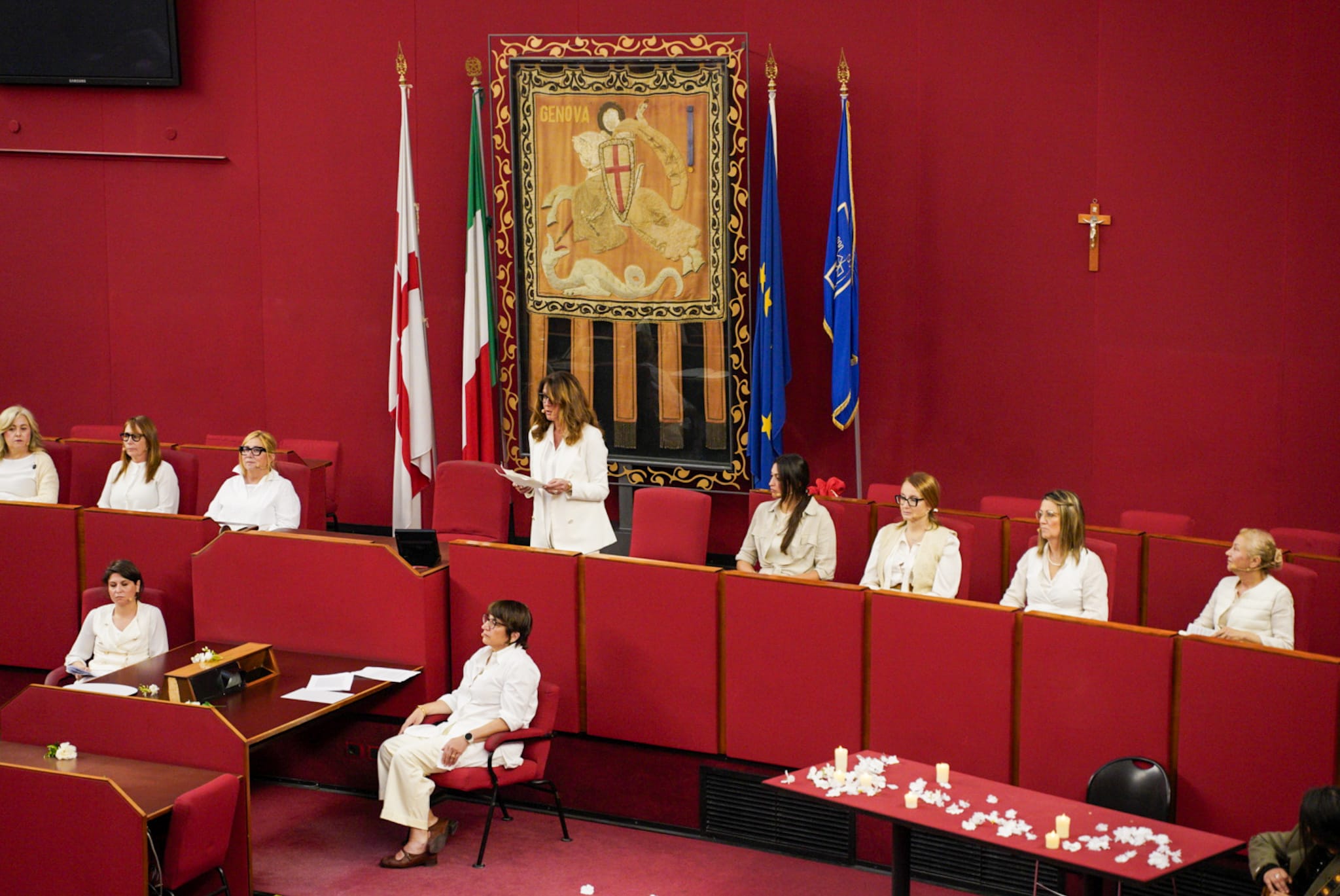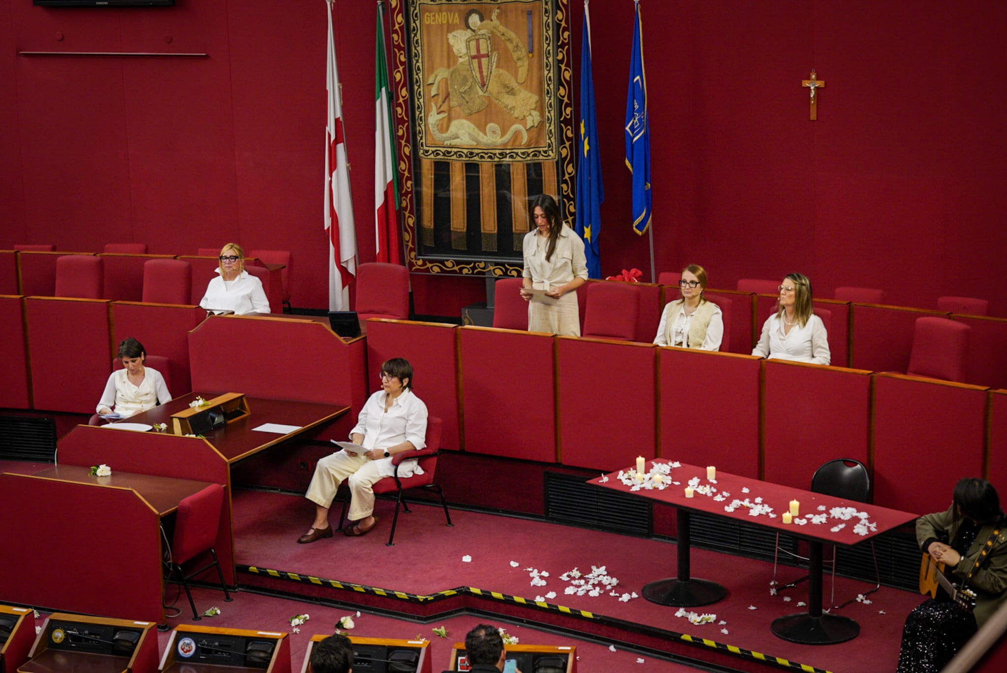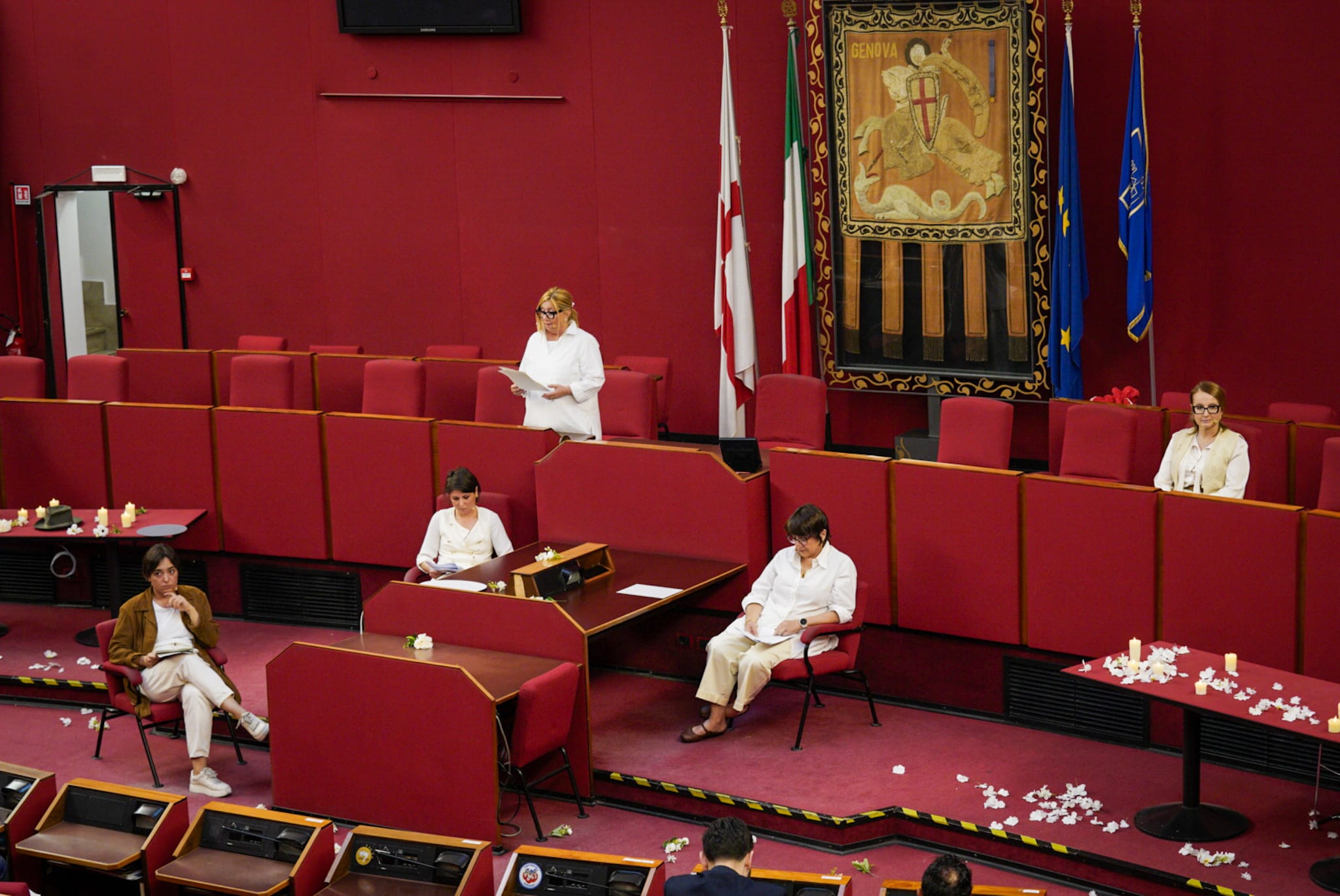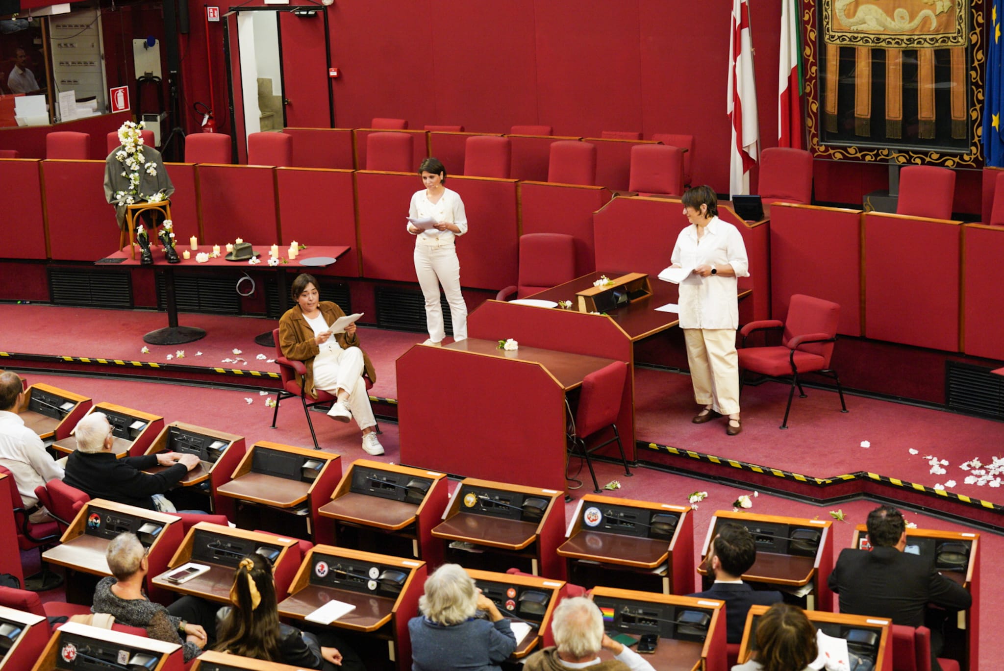 Ad interpretare le donne della Resistenza le assessore Tiziana Beghin, Rita Bruzzone, Cristina Lodi Silvia Pericu, Arianna Viscogliosi e le consigliere Vittoria Canessa Cerchi, Martina Caputo, Ilaria Cavo, Serena Finocchio, Francesca Ghio, Paola Maccagno, Rosanna Stuppia, Sara Tassara, Erika Venturini e Laura Sicignano. L'ultima battuta del testo è stata affidata alla sindaca Silvia Salis: un gesto simbolico che lega memoria storica e responsabilità istituzionale del presente.