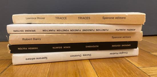 Aldo Spinelli, Alison Knowles, Allan Kaprow, Angela Mambelli, Angelo Pretolani, Anna Oberto, Anton Burgess, Antonio Calderara, Antonio Flamminio, Art and Language, Augusto Concato, Aurelio Caminati, Ben Patterson, Ben Vautier, Berty Skuber, Carla Iacono, Chiara Veronica Natta, Claudio Costa, Coco Gordon, Corrado D’Ottavi, Dario Gentili, Didier Bay, Diter Roth, Douglas Huebler, Emanuele Magri, Emilio Isgrò, Enzo Mari, Enzo Tinarelli, Eugenio Miccini, Fulvio Magurno, Fulvio Testa, George Maciunas, Gerard Minkoff, Giacomo Bonino, Gianni Bertini, Giulia Vasto, Giuliano Della Casa, Giuseppe Chiari, Goeffrey Hendricks, Hamish Fulton, Henry Flint, Irina Gabiani, Jean Leppien, John Cage, Joseph Kosuth, Lanfran¬co Baldi, Lawrence Weiner, Li Chi Choi, Limbania Fieschi, Luigi Ghirri, Marcello Frixione, Maria Luisa Malerba, Maurizio Camerani, Maurizio Duranti, Mauro Ghiglione, Mauro Panichella, Michelangelo Penso, Milan Knizak, Mirella Bentivoglio, Paola Nizzoli Desiderato, Paolo Icaro, Philip Corner, Pino De Luca, Ray Jhonson, Rebecca Ballestra, Richard Hartwell, Richard Nonas, Rino Mangiapane Baldassarri, Robert Barry, Robert Filliou, Roberto Rossini, Rolando Mignani, Roland Sabatier, Sandra Chiesa, Sandro Ricaldone, Sarenco, Takehisa Kosugi, Tomaso Binga, Ugo Carrega, Vincenzo Agnetti, Vincenzo Ferrari, Wolf Vostell.