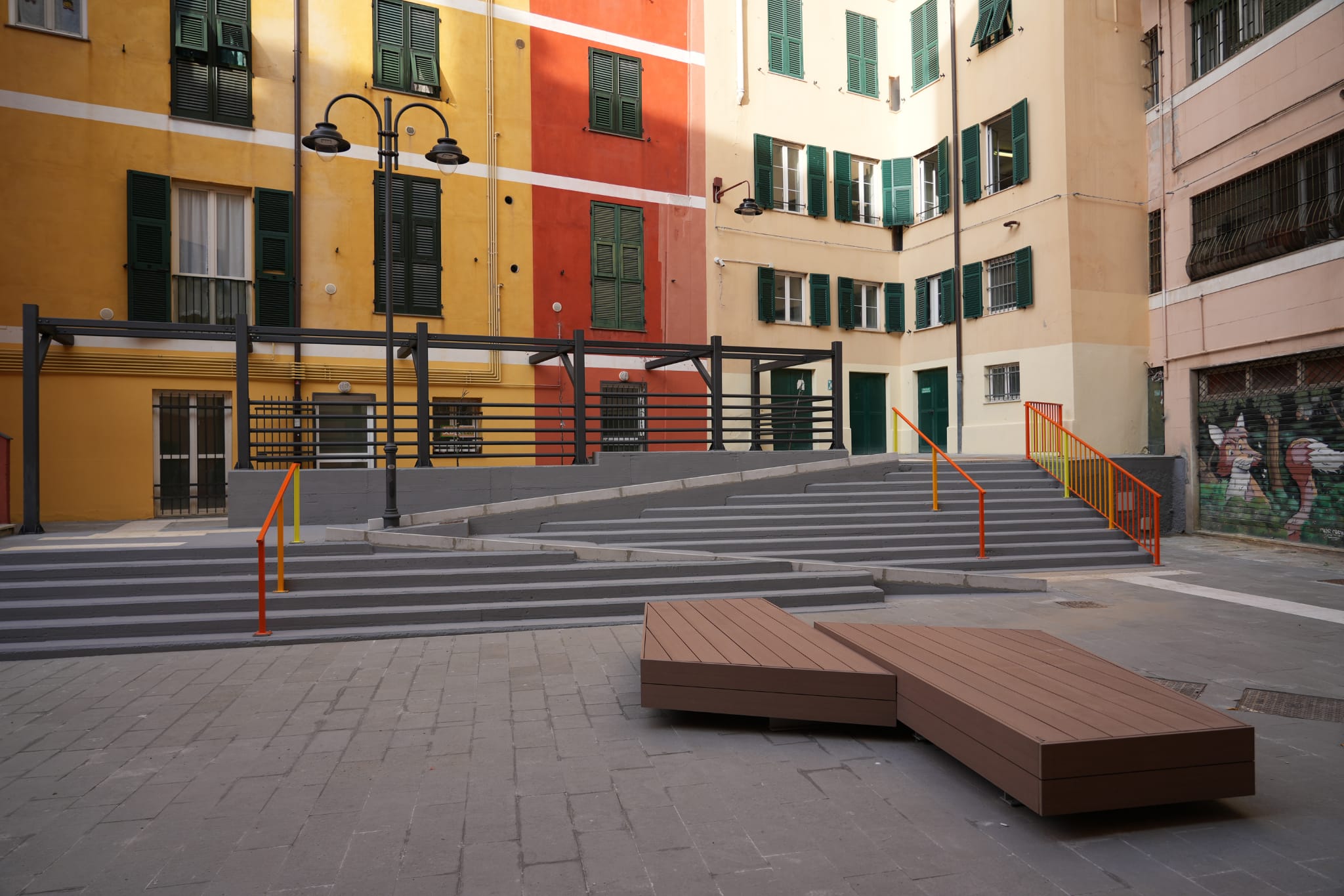 Piazza delle Marinelle è stata oggetto di un intervento di demolizione delle rampe, scale e parapetti esistenti, e la realizzazione di una “scalea”, ovvero un’ampia gradinata architettonica che consente una visione più ariosa di tutta la piazza che, pur mantenendo e collegando le differenze di quota esistenti, diventa in questo modo un sistema completamente aperto e permeabile. La stessa “scalea” potrà essere utilizzata con funzioni di sedute pubbliche durante l’allestimento di eventi o per la semplice socializzazione.