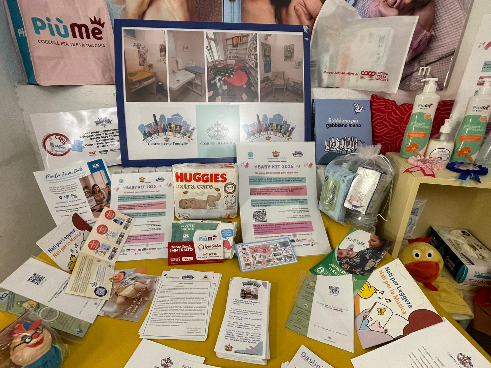 Il Baby Kit contiene alcuni prodotti e sconti per mamma e bebè, ma è soprattutto un’occasione per fornire a tutte le famiglie informazioni diffuse, in lingue diverse, che le orienteranno rispetto ad un sistema di risorse e di servizi del territorio sempre più ampio: dépliant della Biblioteca Internazionale De Amicis, materiali dei Servizi Consultoriali ASL 3 Genovese, opuscoli dedicati alla salute materno-infantile e alla promozione della lettura nella prima infanzia e informazioni utili sui servizi comunali e sulle modalità di accesso. Dal 2026, inoltre, è stato avviato il nuovo Centro per le Famiglie, con sede a Palazzo Tursi, che diventa punto di riferimento unico per servizi, orientamento, accoglienza e sostegno alla genitorialità.