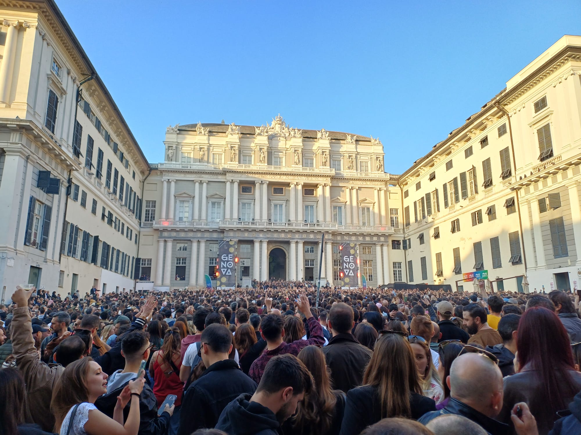 A partire dalle 19 la superstar internazionale Charlotte de Witte ha preso il comando della console, regalando alla città una performance memorabile che ha saputo unire generazioni diverse in un’unica, grande festa collettiva. Il riscontro di pubblico è stato eccezionale: 8.000 persone hanno occupato stabilmente la piazza per l'intera durata del set. Il flusso costante di visitatori e curiosi ha portato il conteggio totale delle presenze, durante la performance di Charlotte de Witte, a superare quota 20.000, confermando la capacità del capoluogo ligure di attrarre grandi eventi di respiro globale. La serata ha visto una partecipazione eterogenea: non solo i "clubbers" più accaniti e gli appassionati di musica elettronica, ma anche moltissimi giovani, famiglie e turisti affascinati da un’atmosfera fuori dall’ordinario.