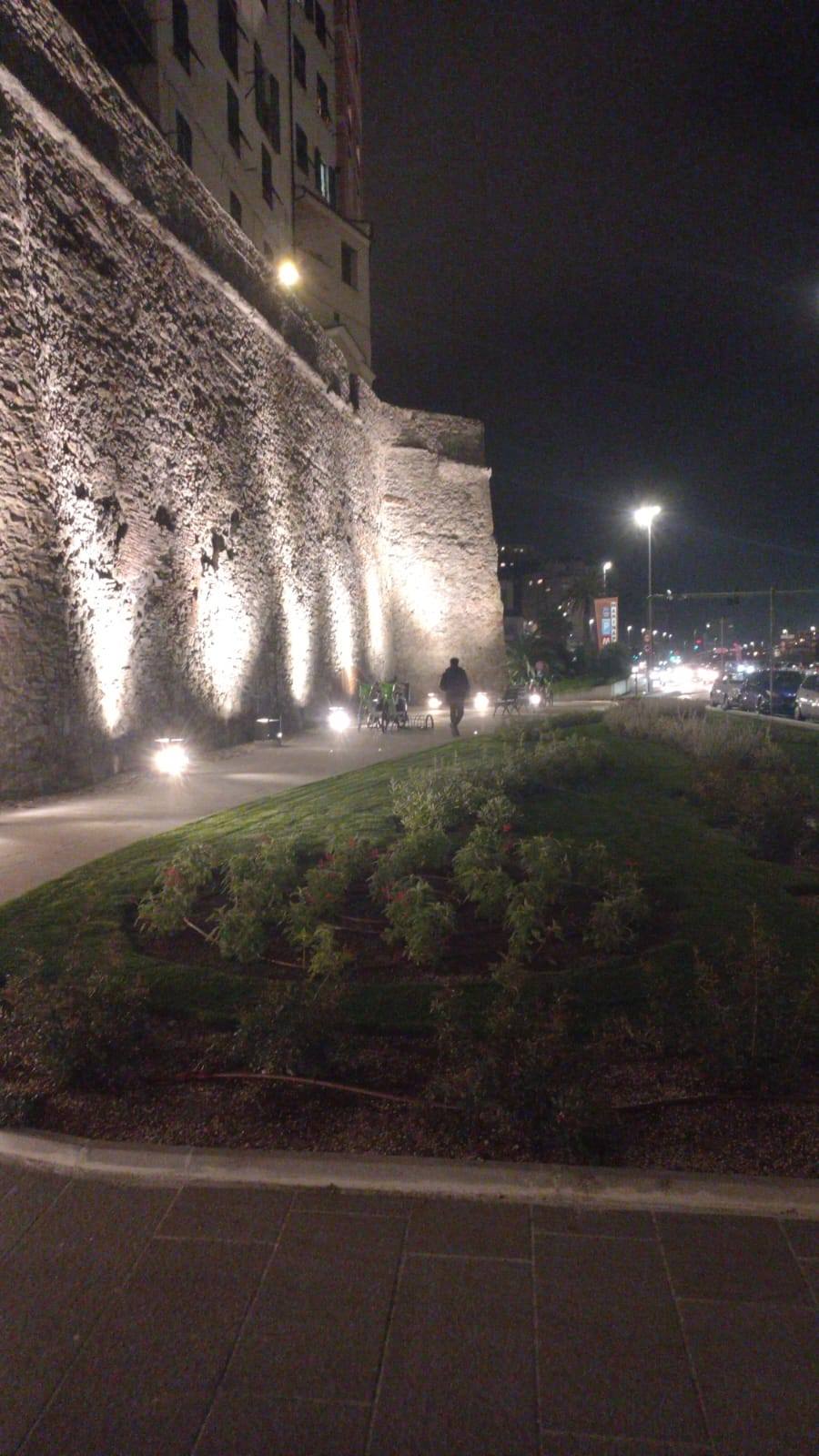 L’intervento ha riguardato, inoltre, le adiacenti piazze delle Grazie e San Giacomo della Marina, dove la nuova conformazione dei marciapiedi contribuirà a incrementare l’ordine e il decoro degli spazi. Realizzata anche la nuova illuminazione architettonica delle mura per valorizzare il paramento murario del percorso sotto le mura.