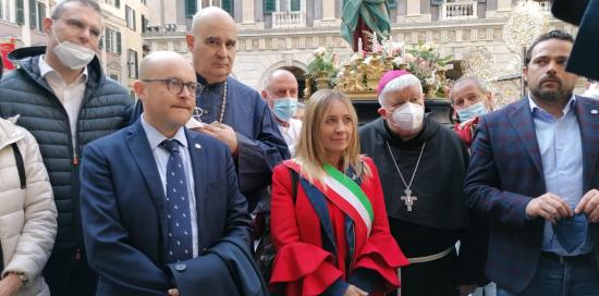 Una nutrita delegazione di sindaci della città metropolitana e di loro delegati, di rappresentanti delle istituzioni locali ha accompagnato la processione su via San Lorenzo. In rappresentanza del Comune di Genova l’assessore ai grandi Eventi Paola Bordilli e l’assessore al Bilancio Pietro Piciocchi.