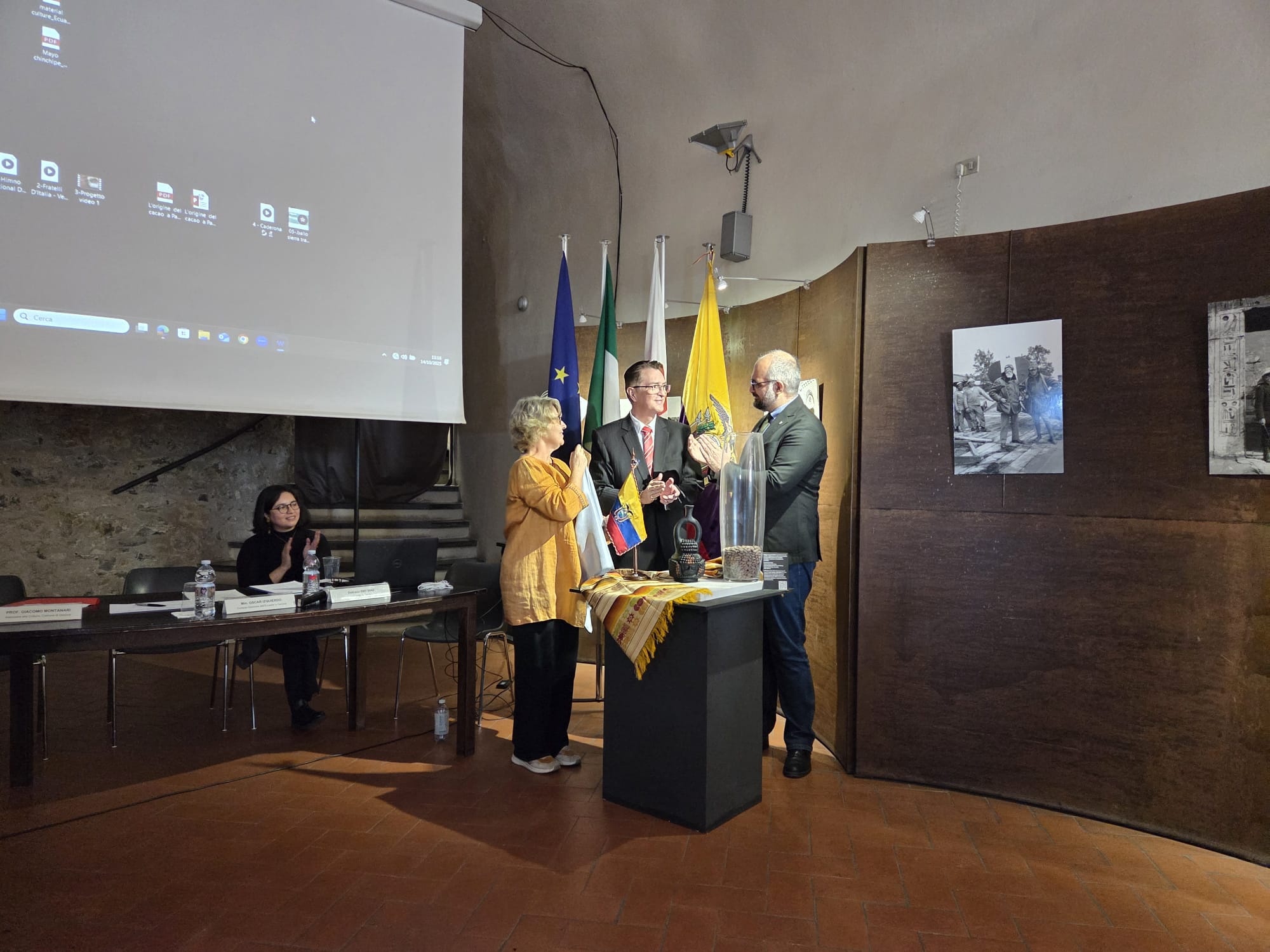 La riproduzione del vaso consegnata a Castello D’Abertis dal console generale dell’Ecuador
