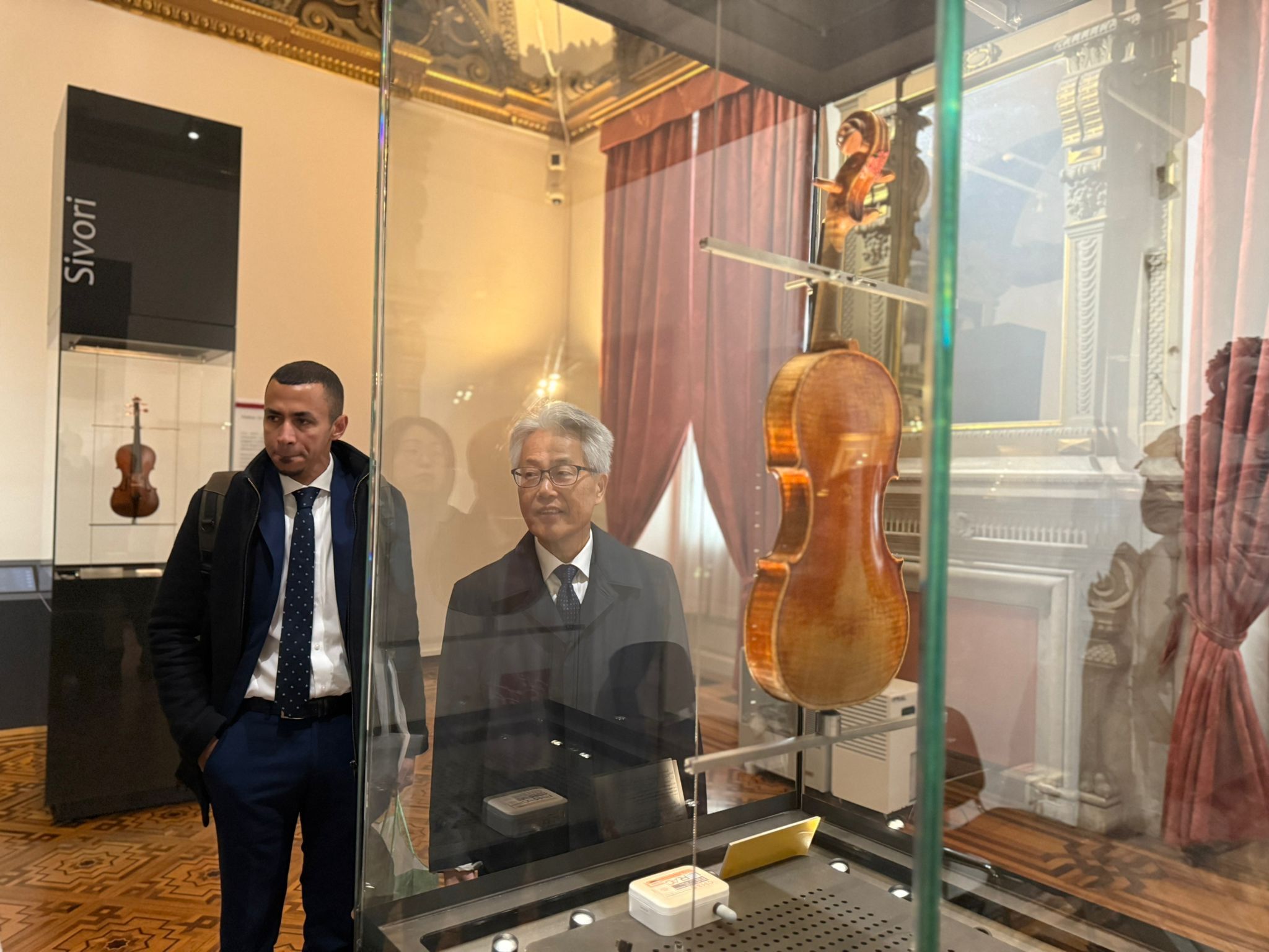 La visita si è conclusa nelle sale paganiniane, dove all’ambasciatore è stata raccontata la storia di Nicolò Paganini e del premio internazionale a lui dedicato, insieme a quella del celebre violino “Cannone”.