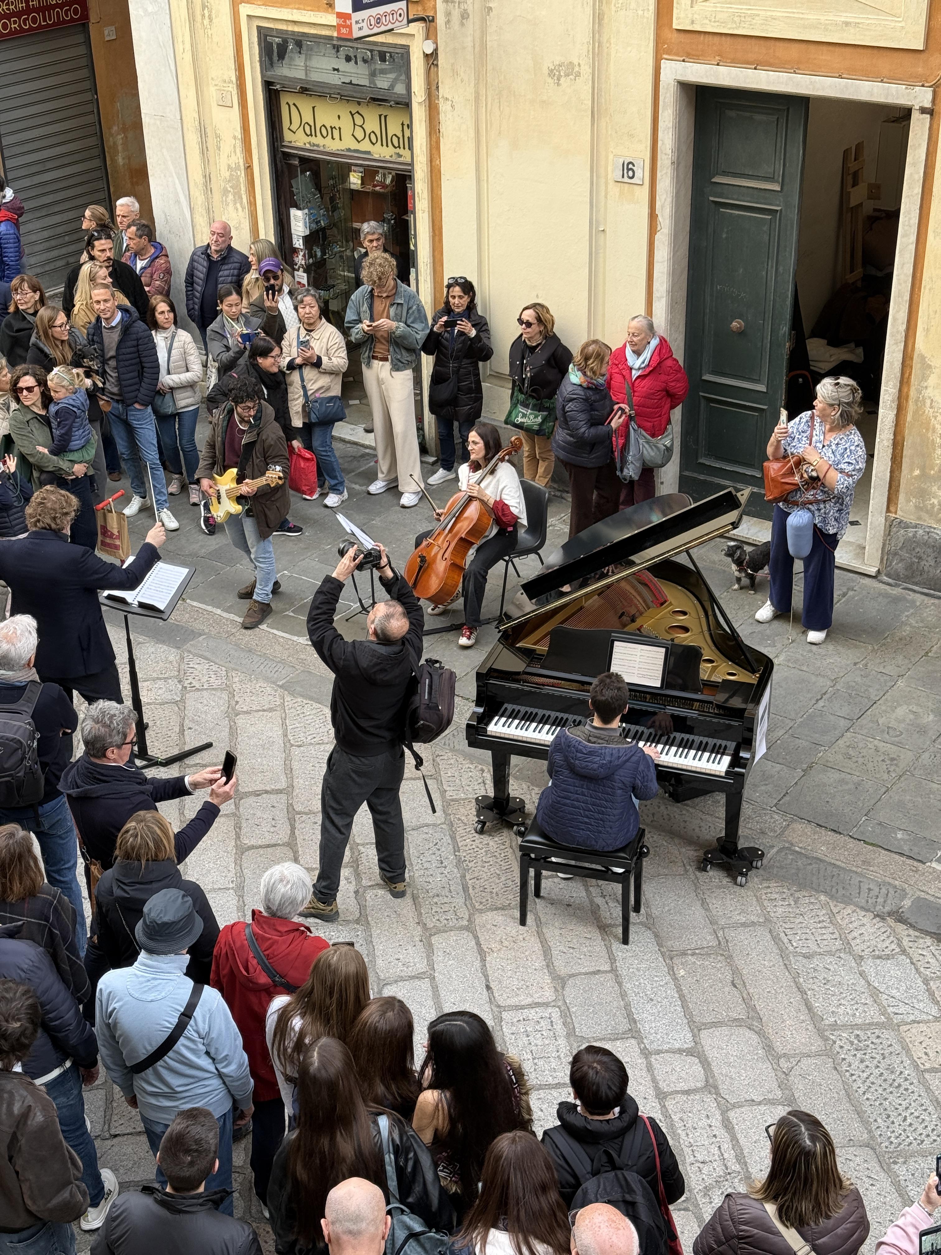 Tra un’esibizione e l’altra, lungo Strada Nuova, risuonano le inconfondibili melodie di Gino Paoli: un omaggio della città al grande artista, la cui musica torna a vivere tra le atmosfere uniche dei palazzi cinquecenteschi. Inoltre, per tutti gli appassionati di musica, è anche possibile fermarsi a suonare qualche nota grazie all’iniziativa “Open Piano – A piano for all”, con due pianoforti in libera fruizione, dalle 10 alle 18, in corrispondenza di Palazzo Tursi e Palazzo Lercari Parodi. Chiunque potrà sedersi e suonare, creando una colonna sonora spontanea nel cuore della città.