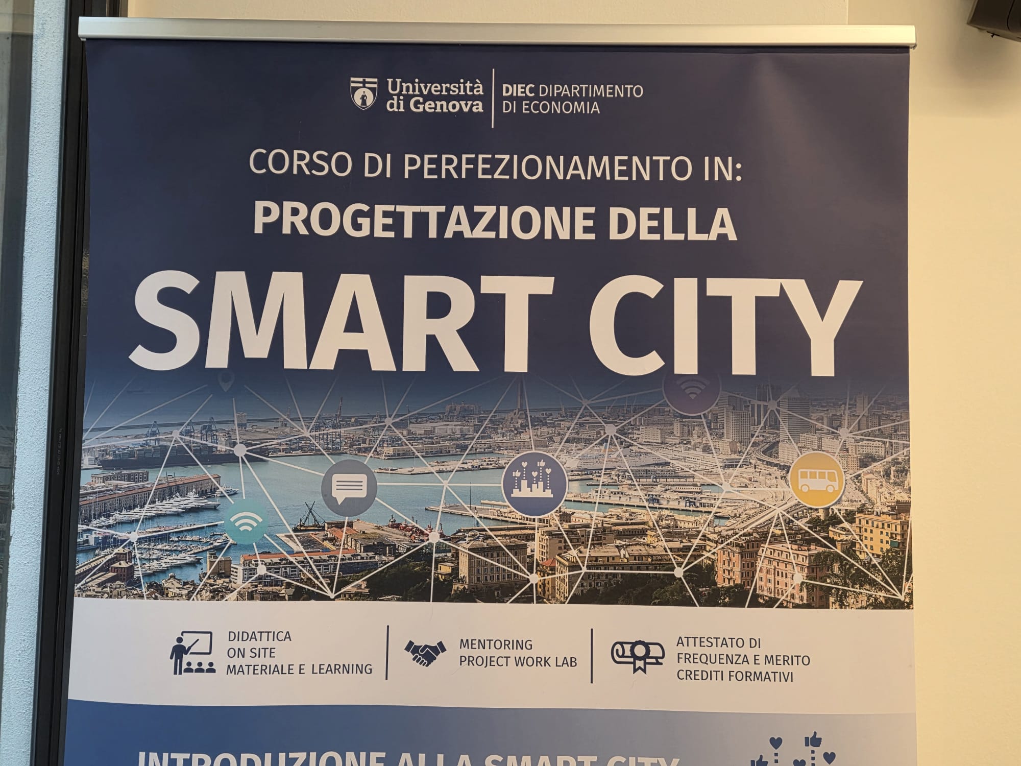 Il corso, che lo scorso anno non si era potuto tenere per mancato raggiungimento del numero minimo di iscritti, ha avuto quest’anno un ottimo riscontro, con 23 allievi iscritti, 11 dei quali fanno parte di istituzioni socie dell’Associazione Genova Smart City, tra cui dipendenti del Comune di Genova.