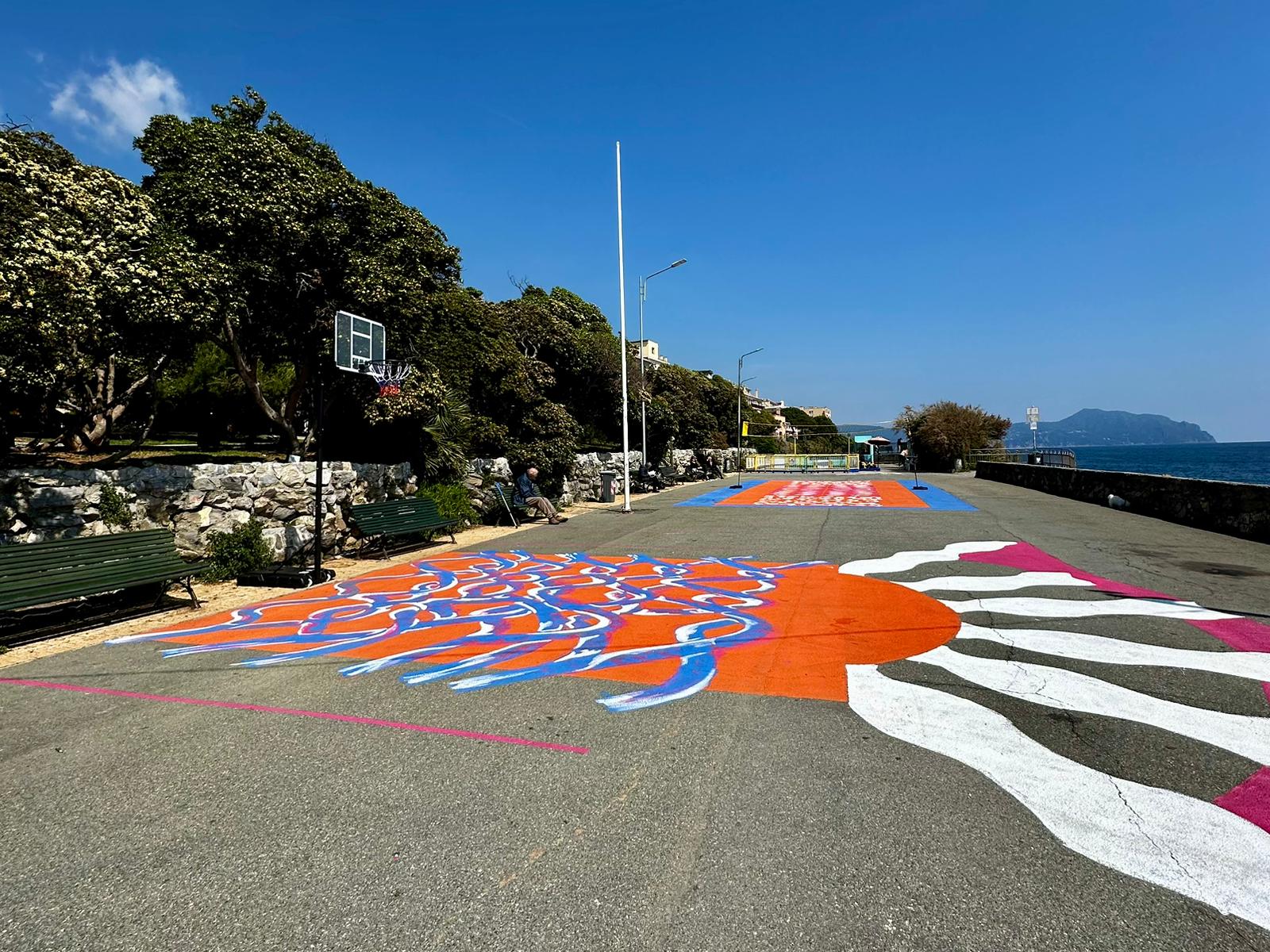 L’intervento, realizzato attraverso la sponsorizzazione tecnica del “Chiosco da Nico”, ha visto la realizzazione di due campi sportivi all’aperto, uno destinato alla pallavolo e l’altro alla pallacanestro (dimensioni rispettivamente di 11x13 metri e 8x16 metri), attraverso la pitturazione del manto stradale con vernici specifiche adatte ai conglomerati bituminosi.