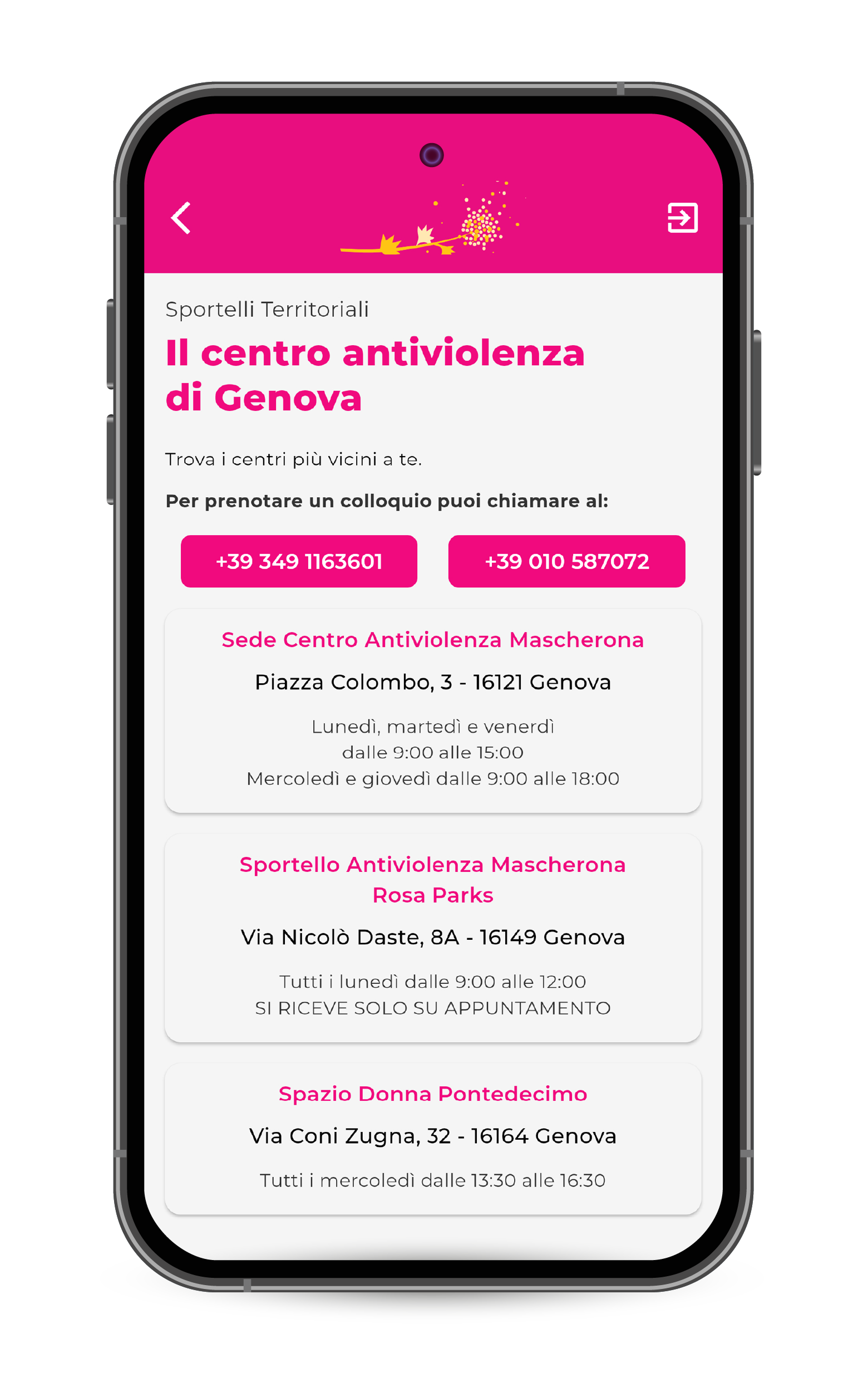 Disponibile per sistemi iOS e Android, la app – primo esempio in Italia associato ad un centro antiviolenza dedicato alle donne - rappresenta l'inizio di un percorso di protezione che inizia online e prosegue attraverso l’accoglienza e il sostegno del Centro Antiviolenza. L’obiettivo è offrire alle donne un canale discreto e immediato per chiedere aiuto e avviare un percorso di uscita dalla violenza.