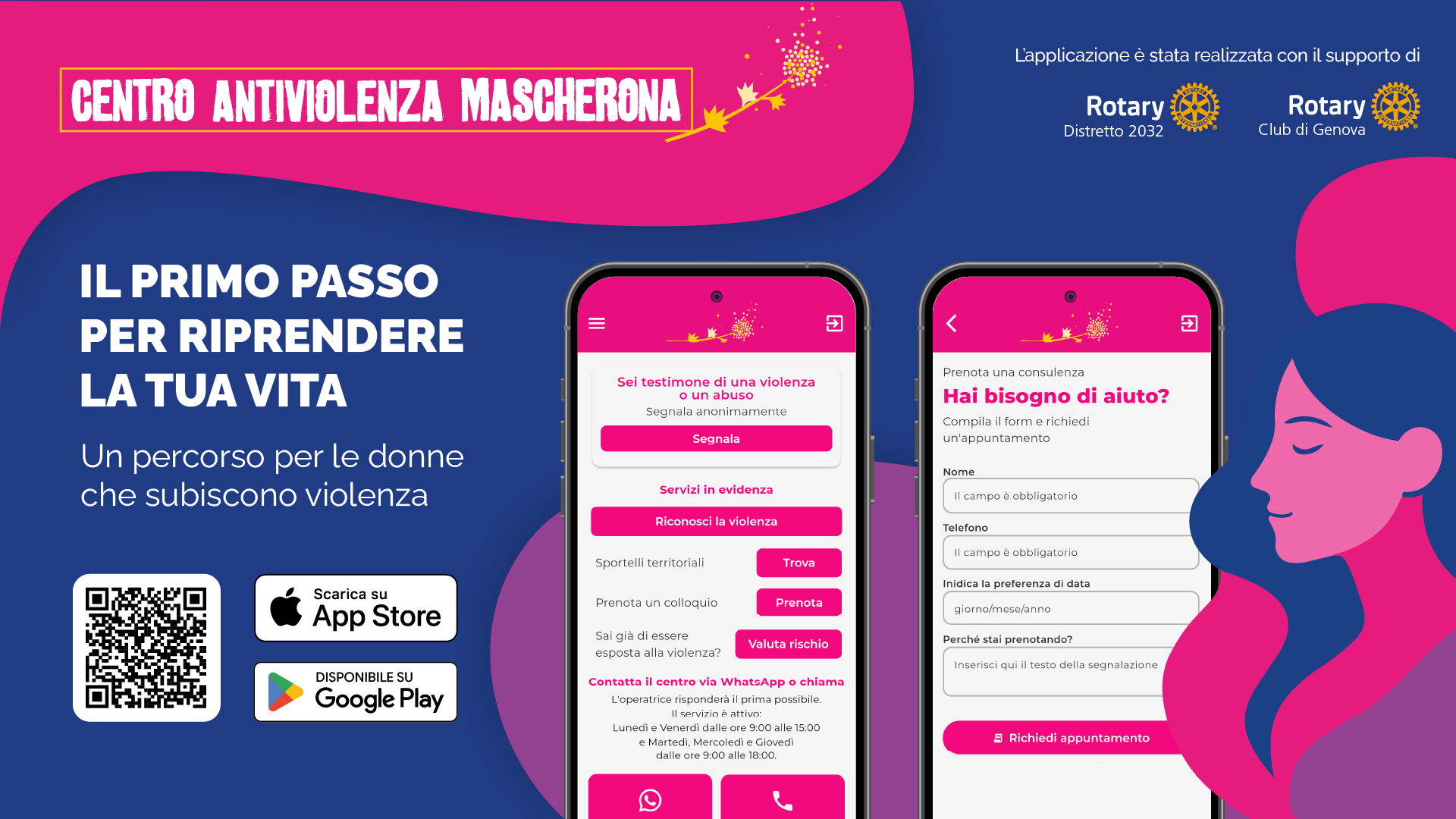 Il progetto nasce dalla collaborazione tra Rotary Club Genova, capofila del progetto, fondato nel 1924, e parte del Distretto 2032; Centro Antiviolenza Mascherona  punto di riferimento sul territorio genovese per l’accoglienza e il sostegno alle donne vittime di violenza e dpsonline*, agenzia genovese di comunicazione con oltre 40 anni di esperienza, che ha curato lo sviluppo dell’applicazione e la strategia di comunicazione.