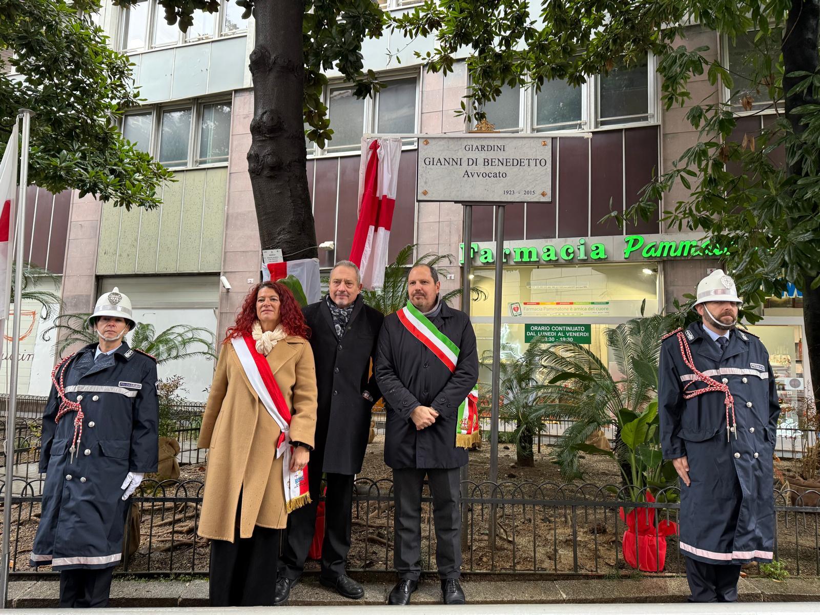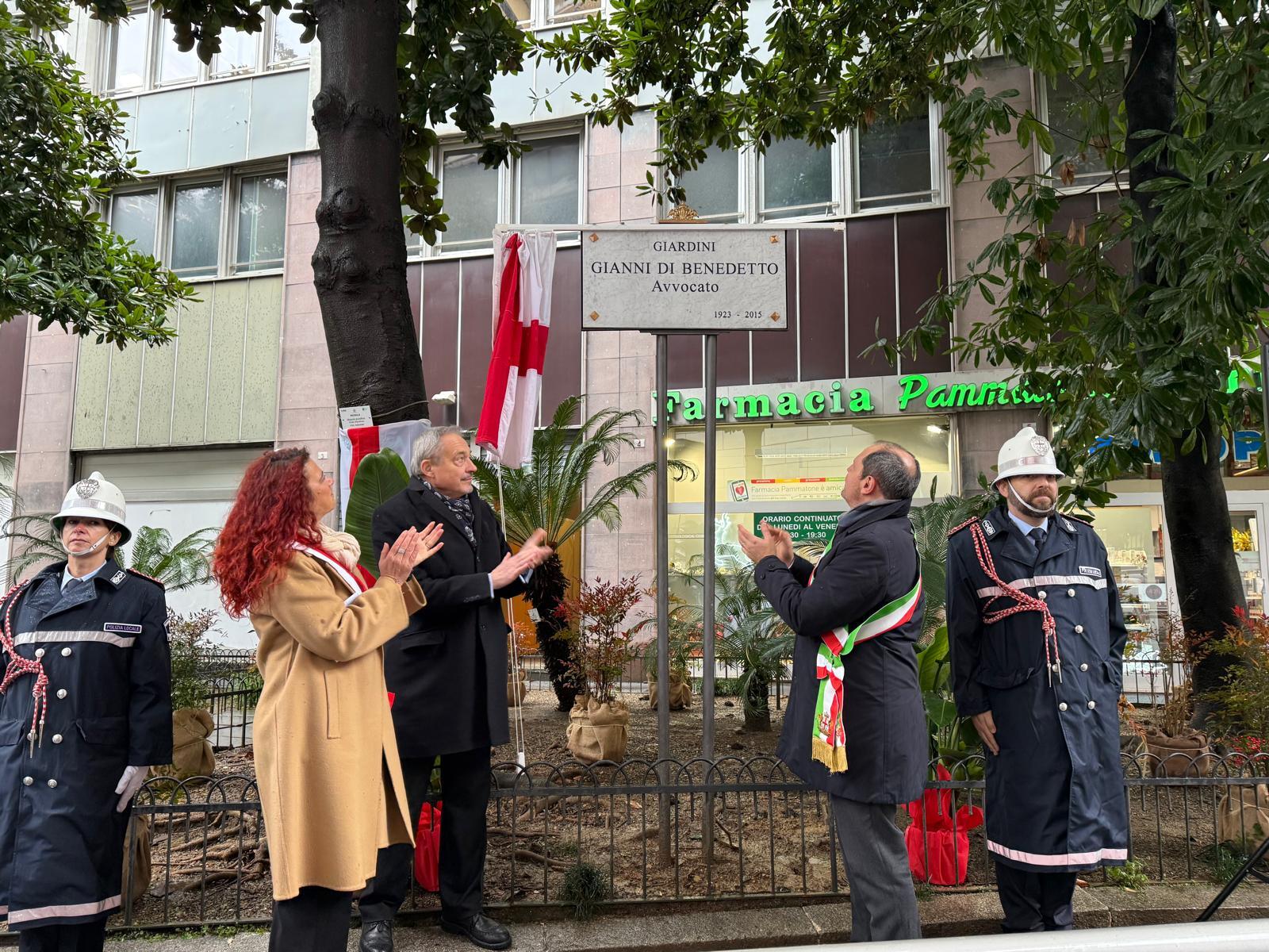 Da oggi i giardini di piazza Portoria, situati di fronte al Palazzo di Giustizia, sono intitolati all’avvocato Gianni di Benedetto, scomparso nel 2015 e ricordato per il suo profondo contributo alla professione forense ed alla vita istituzionale della città.