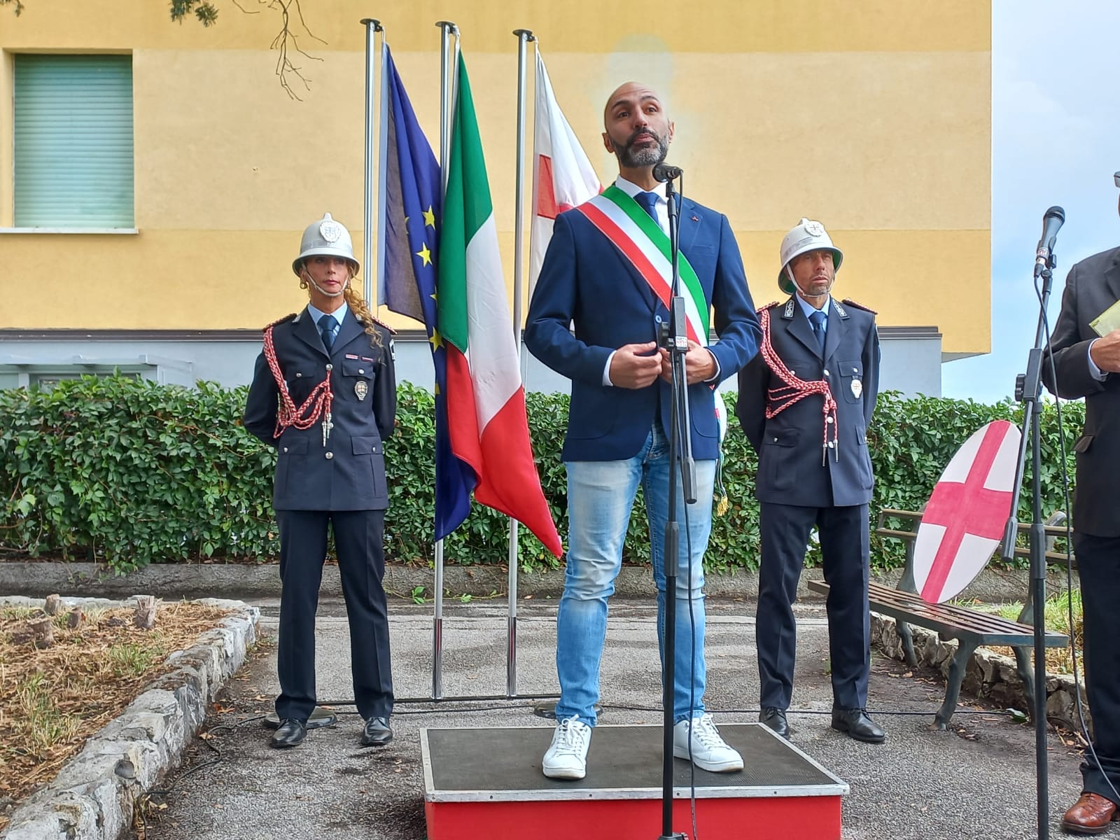Alla cerimonia di intitolazione a don Giacomo Chiesa del Belvedere di via San Bartolomeo Fossato hanno partecipato, tra gli altri, consigliere delegato alle Vallate del Comune di Genova Enrico Vassallo, il presidente del Municipio II Centro Ovest Michele Colnaghi e il presidente del Cercamemoria della Biblioteca Gallino Pietro Pero.