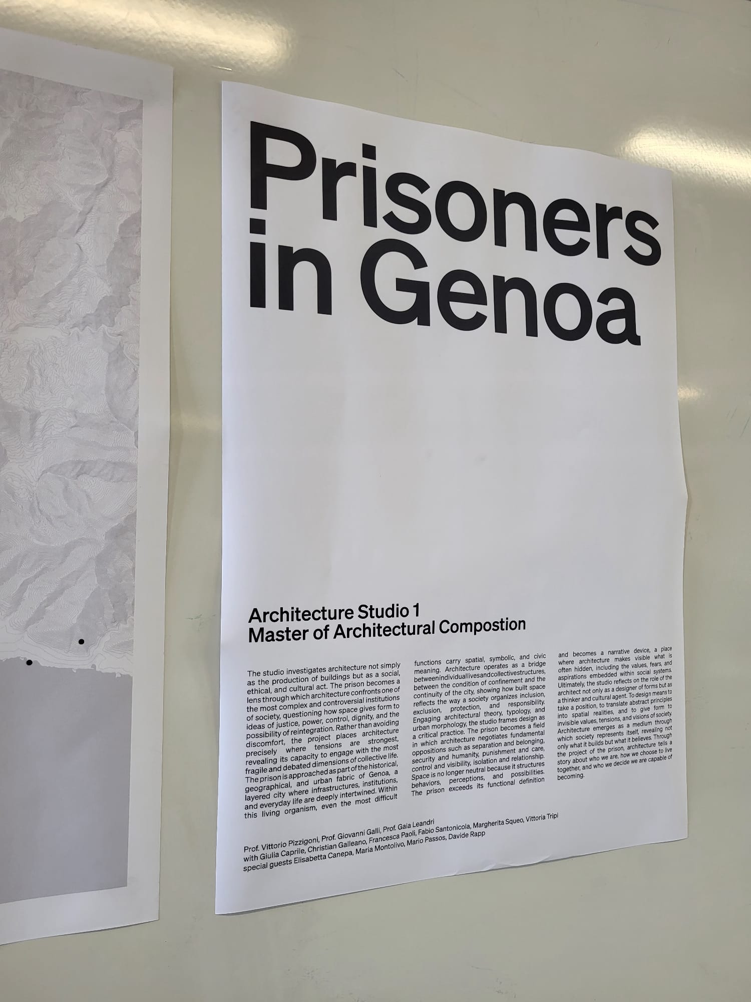 “Prisoners in Genoa”, è questo il tema sul quale si sono confrontati gli studenti e le studentesse del master degree in Architectural Composition, che per la lezione odierna si sono confrontati non solo sulle strutture carcerarie in sé, ma anche sul loro essere parte integrante del tessuto storico, geografico e urbano di una città.