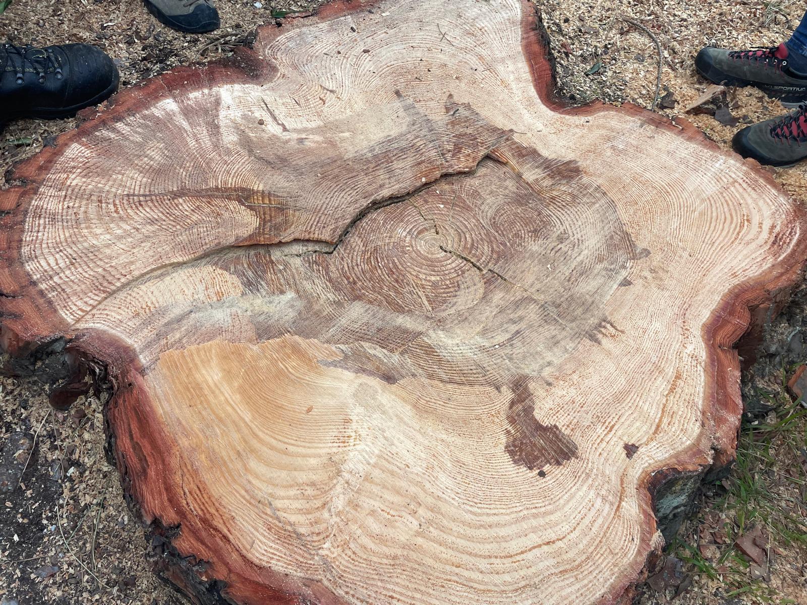 L'albero era a rischio caduta: durante il taglio rilevati con chiarezza i “cretti” alla base della pianta già evidenziati dalle perizie tecniche