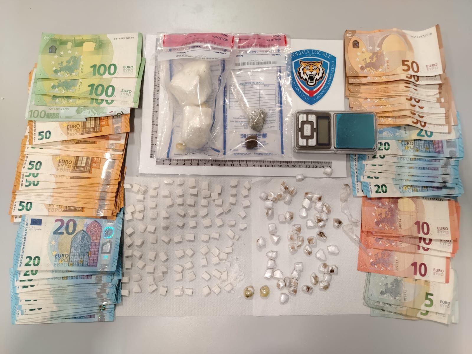 Sequestrati due etti di cocaina, crack e oltre ottomila euro