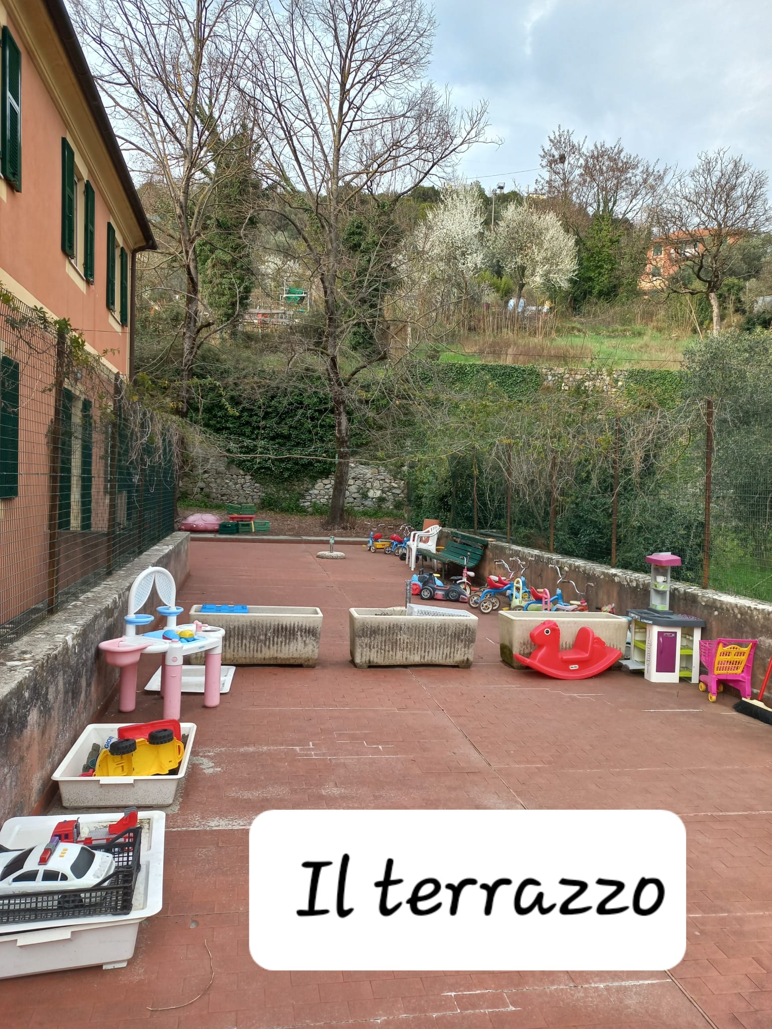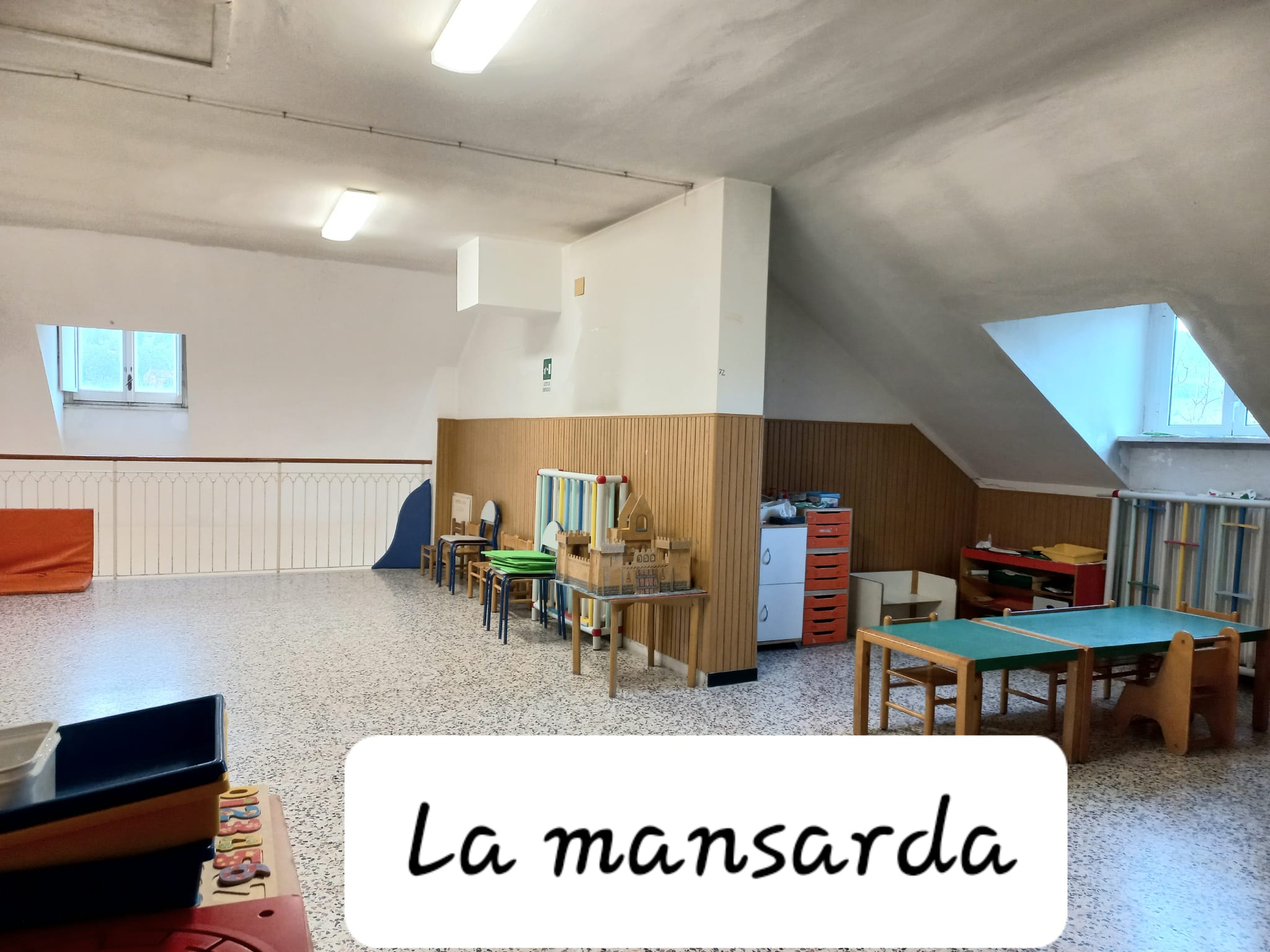 Tre sono le aule per le classi dei bambini di 3-6 anni mentre la quarta aula ospita la sezione primavera, che accoglie con orario full time bambini di età compresa tra i 2 e i 3 anni. Le aule sono allestite con “angoli” per conversare, manipolare vari materiali, leggere e guardare i libri, costruire con materiali strutturati e di recupero, giocare, ritagliare, pitturare, disegnare. Altri locali sono adibiti a laboratori di piccolo e grande gruppo.  L'edificio dispone di un grande terrazzo al primo piano e di un grande giardino attrezzato. Il piano terra ospita la cucina diretta.
