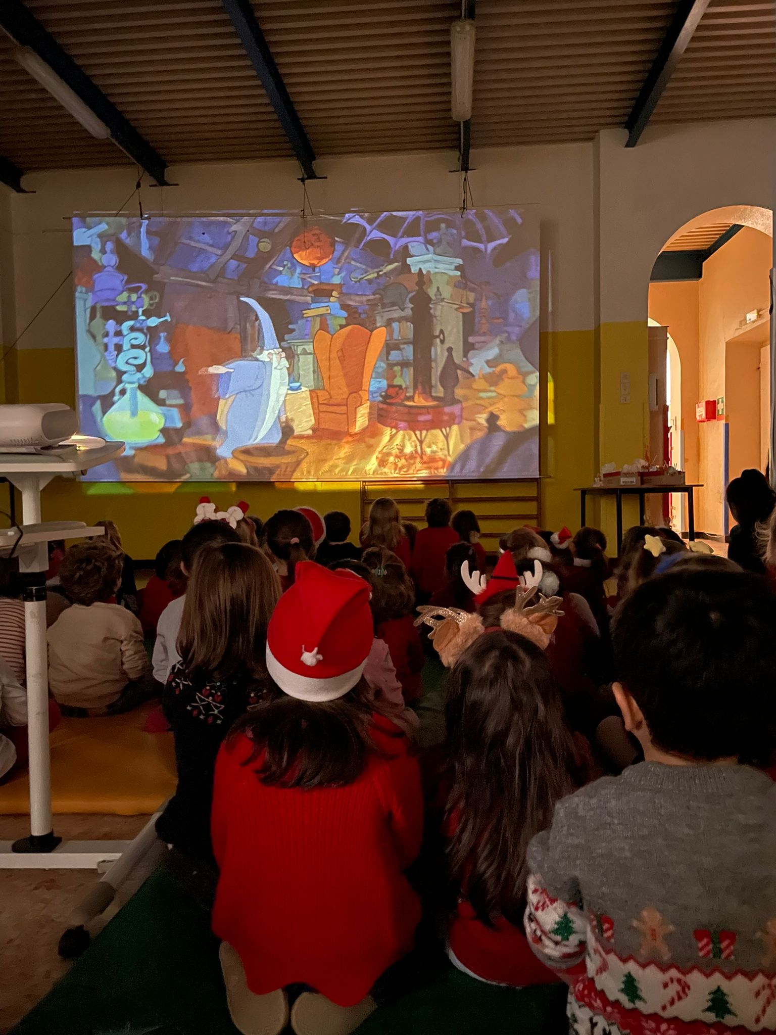 Al primo piano ( secondo dell’edificio) si trovano il salone, una stanza polifunzionale, il refettorio e la cucina. Al piano superiore si trovano le quattro sezioni, la segreteria e i bagni. Da una scala si accede al grande giardino con aiuole piantumate, alberi da frutto, pavimento anti-trauma.