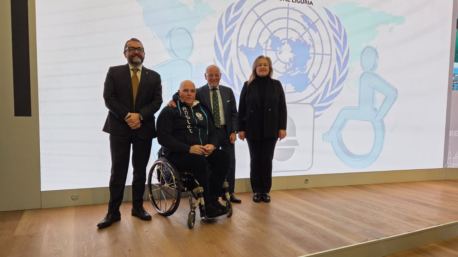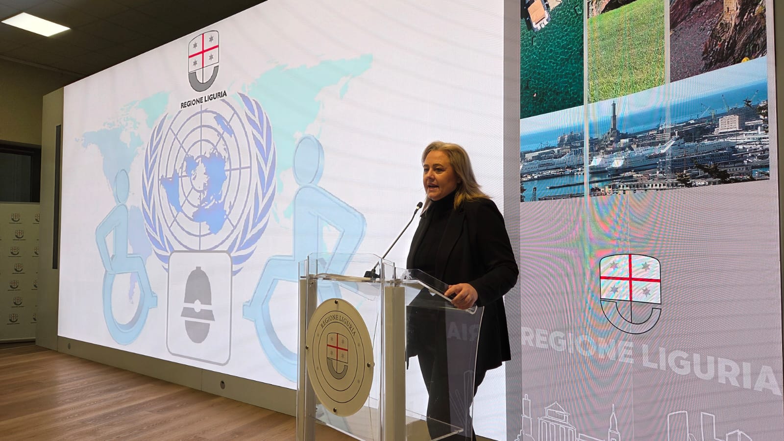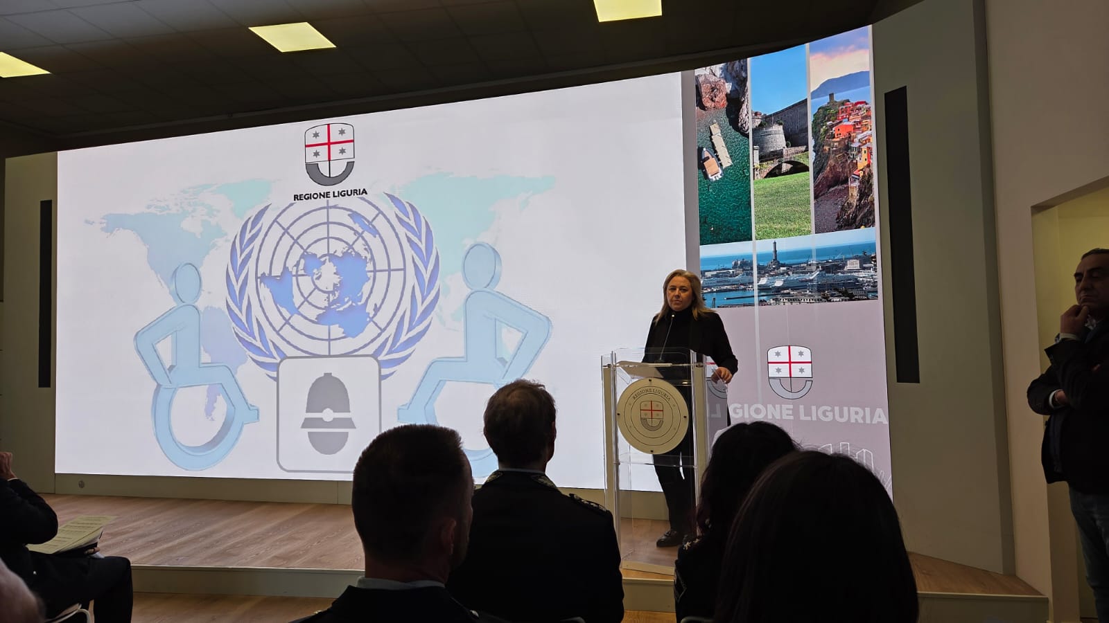 Accanto a lei erano presenti il presidente del Consiglio Regionale della Liguria Stefano Balleari insieme agli assessori di Regione Liguria Paolo Ripamonti (Sicurezza) e Massimo Nicolò (Sanità, Politiche sociali e Terzo settore), ed il segretario e coordinatore della Consulta Regionale per l’Handicap Claudio Puppo.